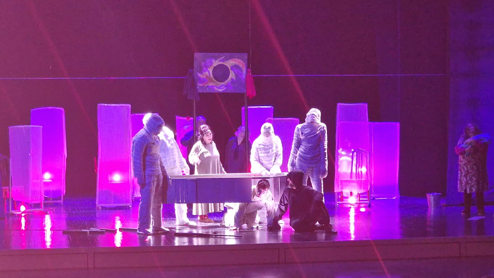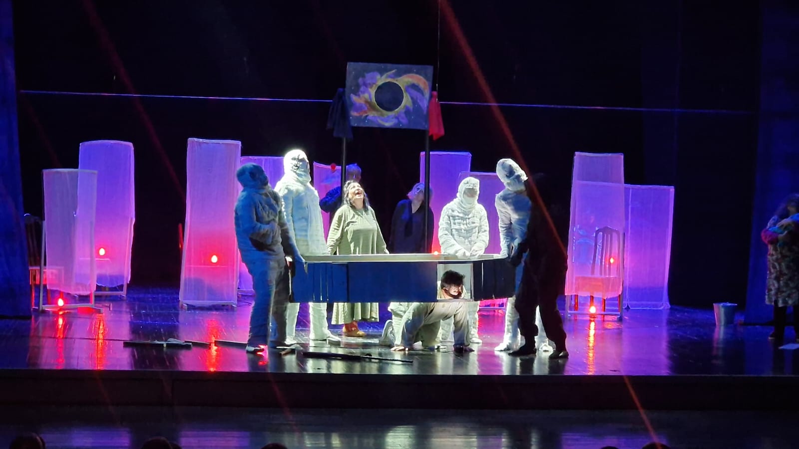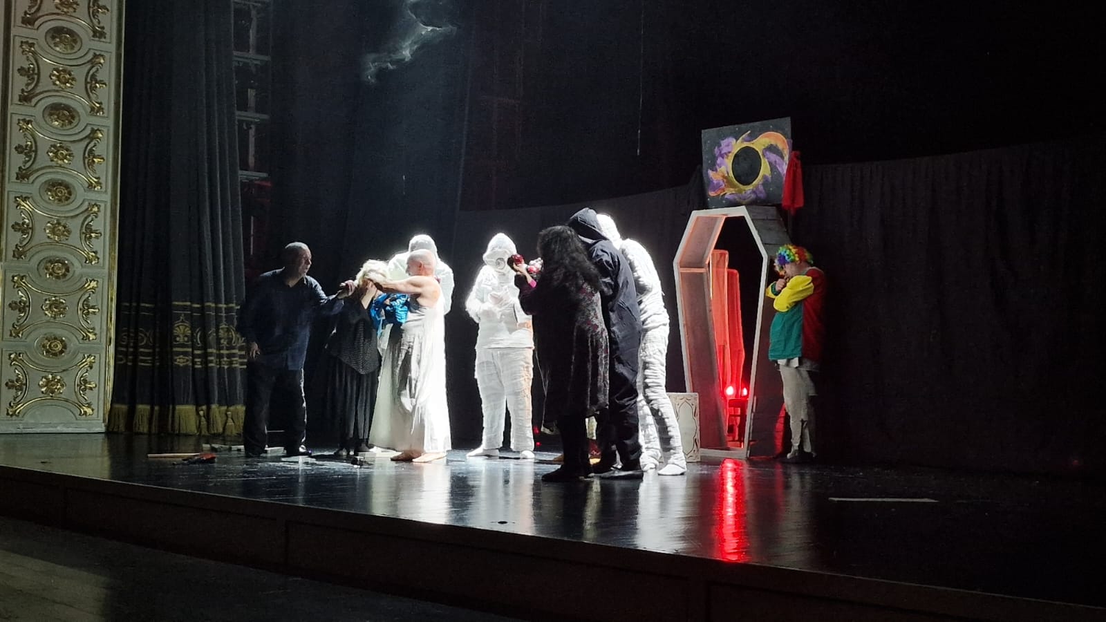 Sonda tamaşa münsiflər heyəti və tamaşaçılar tərəfindən alqışlanıb, yaradıcı heyətə gül dəstəsi və hədiyyələr təqdim olunub, xatirə şəkli çəkilib.