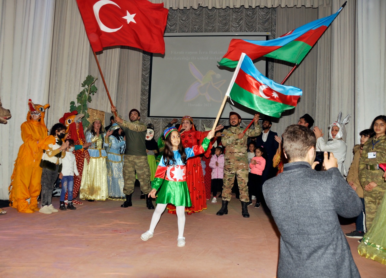 Füzuli Rayon İcra Hakimiyyətinin təşkilatçılığı və Füzuli Dövlət Dram Teatrının dəstəyi ilə şəhid övladları ilə görüş keçirilib. Görüş şəhidlərimizin əziz xatirəsinin 1 dəqiqəlik sükutla yad olunması ilə başlayıb. Tədbirdə teatrın hazırladığı “Ətrin gəlir, Xarıbülbül adlı” poetik xalq tamaşası nümayiş etdirilib. Tamaşada Şuşa şəhərinin erməni təcavüzkarlarından azad olunması, Ana vətənin Qarabağla görüşündən bəhs olunub. Tədbir zəfərə aid mahnılar, şəhid övladları üçün hazırlanan “Şən klounlar və nağıl qəhrəmanları” adlı proqramla davam etdirilib.