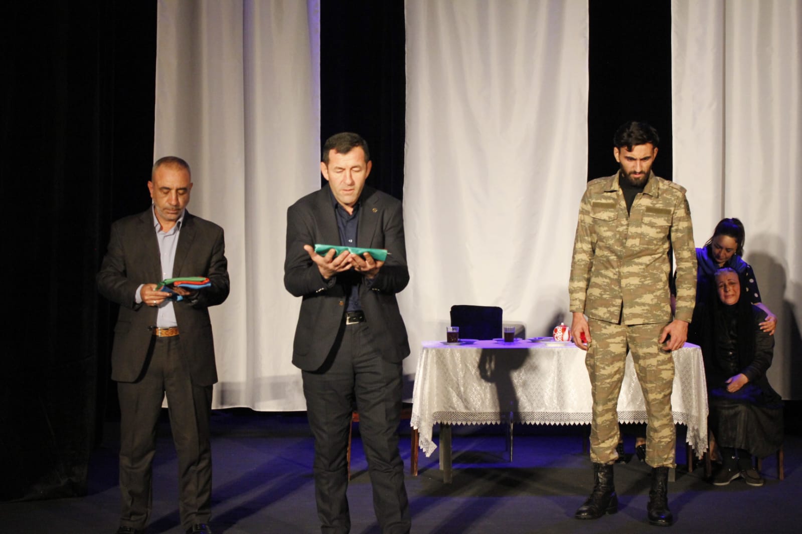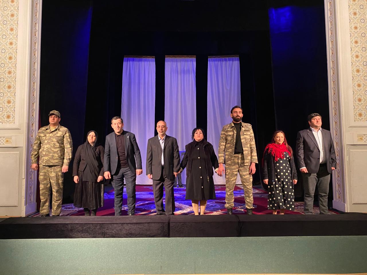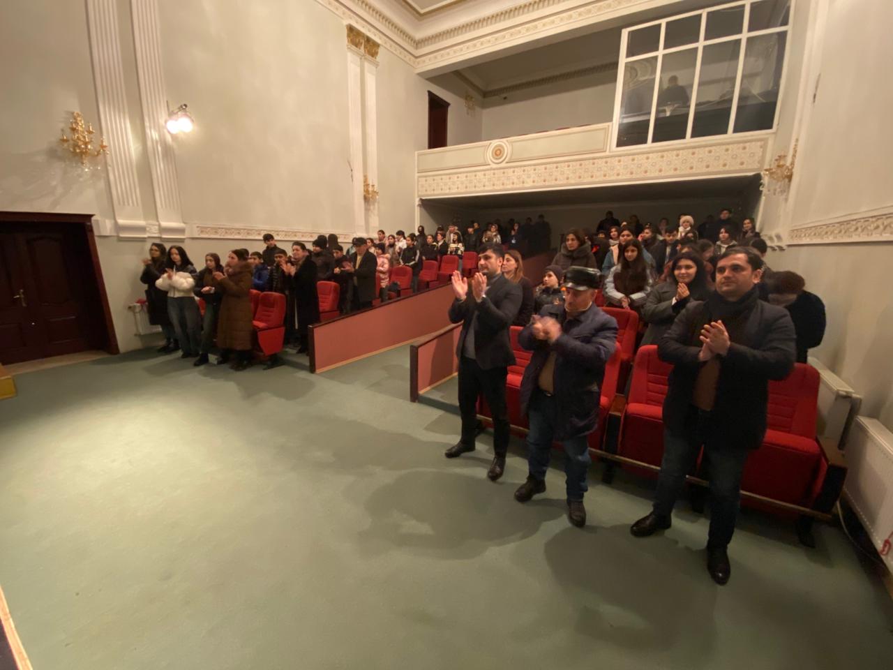 Daha sonra teatrın cari il repertuarına daxil olan, Qafar Cəfərlinin “Şəhid bayrağı” tamaşası məktəblilərə təqdim olunub.