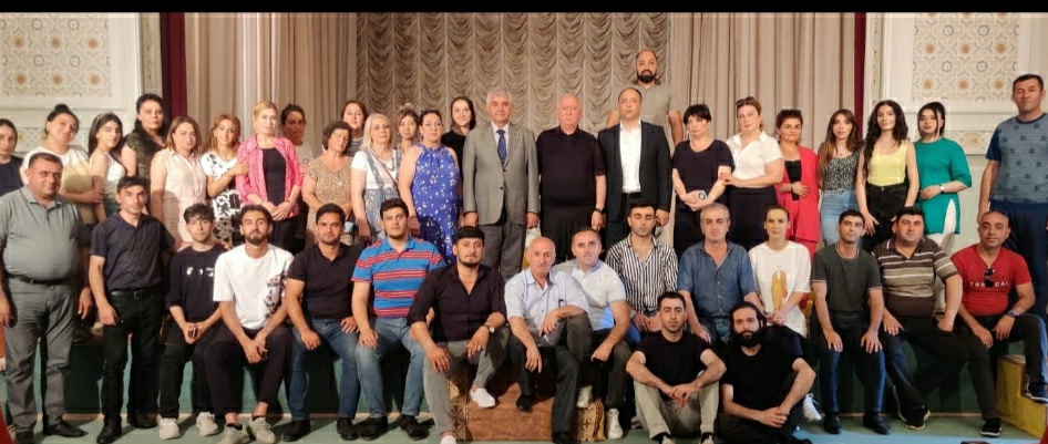 Tamaşadan sonra icra başçısı Alı Alıyev teatra uğurlar arzulayıb və xatirə şəkli çəkilib.