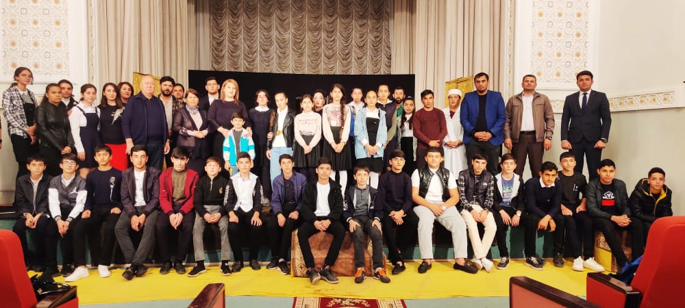 Sonda teatr kollektivi ilə orta məktəbin müəllim və şagirdləri xatirə şəkili çəkdirib.