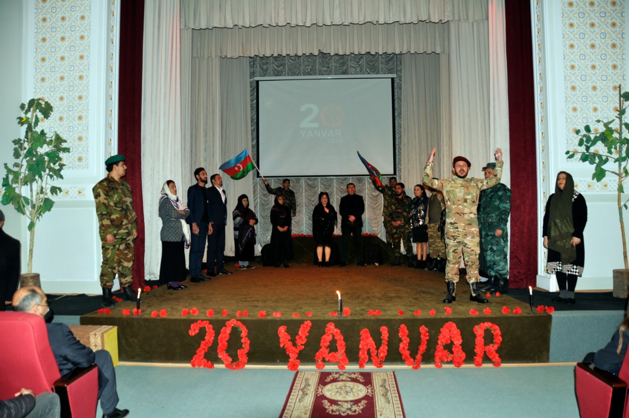 Füzuli Dövlət Dram Teatrı 20 Yanvar faciəsinin 32-ci il dönümünə həsr olunmuş "Şəhidlər ölməz, Vətən bölünməz" adlı poetik xalq faciəsini Füzuli rayon mədəniyyət işçilərinə təqdim edib.