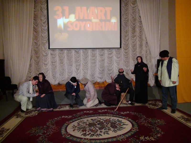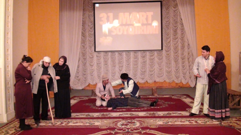 Füzuli Dövlət Dram teatrında 31Mart Azərbaycanlıların soyqırımının 100 illiyi ilə əlaqədar teatrın direktoru, əməkdar mədəniyyət işçisi Vaqif Vəliyevin ssenarisi əsasında hazırlanan "Tarixin qanlı səhifəsi” adlı poetik xalq faciəsi rayon ictimaiyyətinə təqdim olunub.