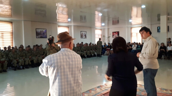 Teatrın repertuarında olan əsərlərdən parçalar, aktyor və aktrisaların ifasında mahnılar, məktəblilərin söylədiyi şeirlər şəxsi heyətdə və qonaqlarda ruh yüksəkliyi yaradıb.