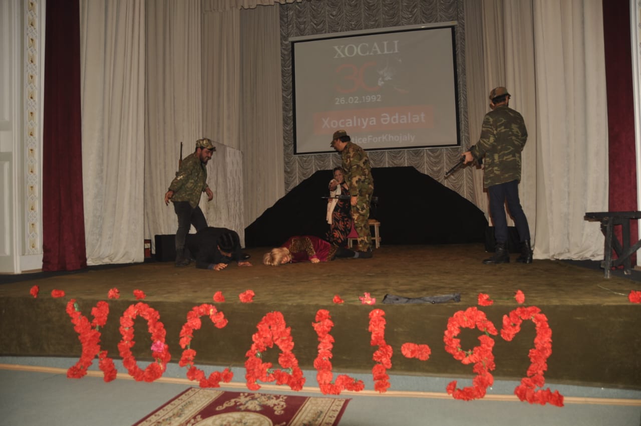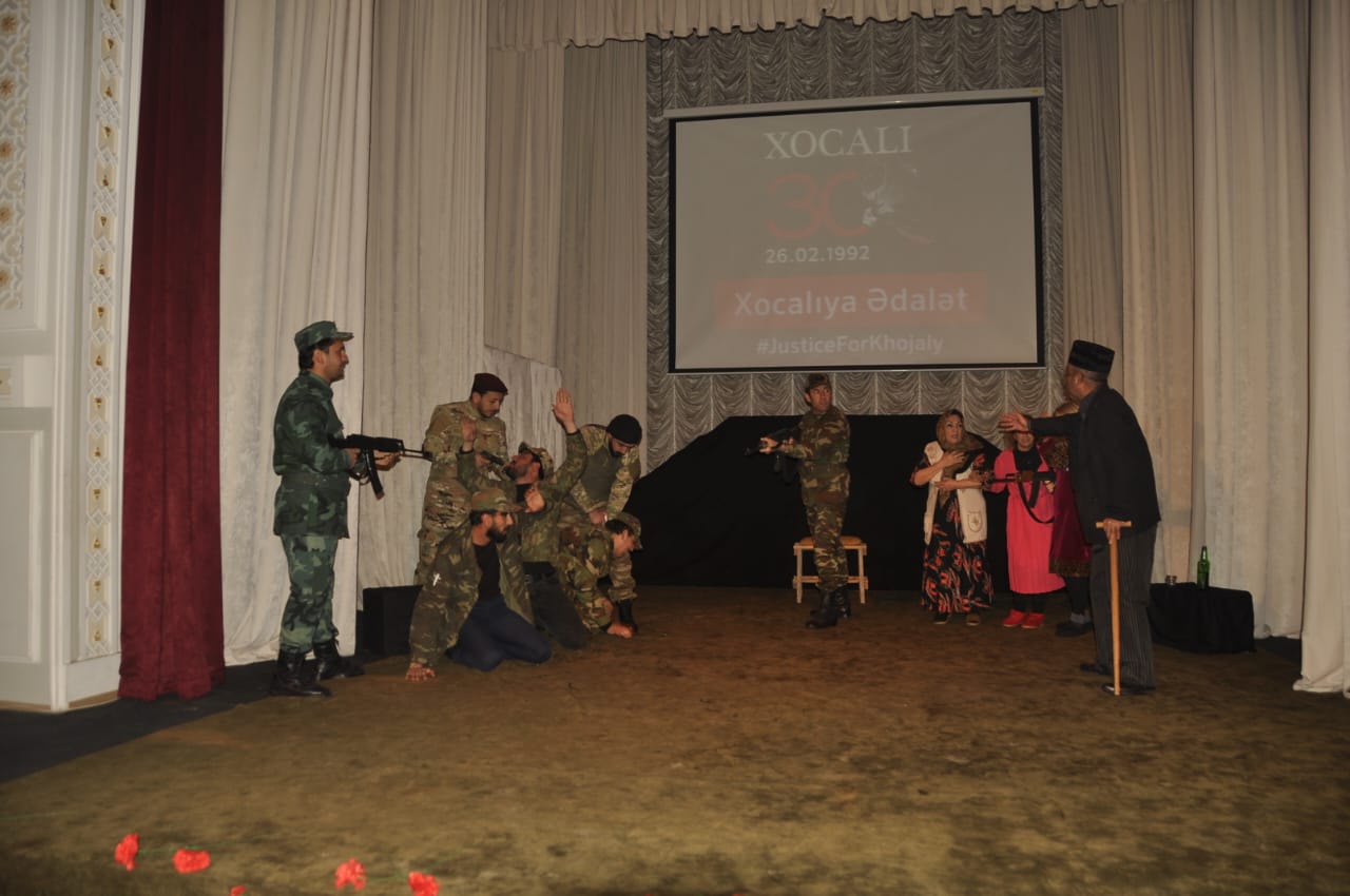 Füzuli Dövlət Dram Teatrı Xocalı faciəsinin 30-cu il dönümü ilə əlaqədar Milli Ordunun əsgər və zabit heyəti qarşısında A.Həsənoğlunun "Yaddaş" tamaşası ilə çıxış edib.