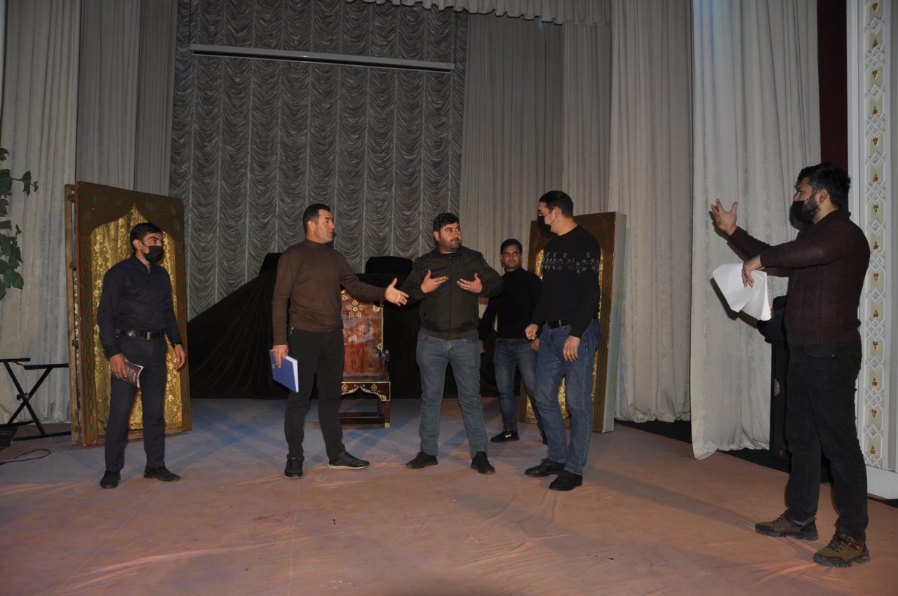 Füzuli Dövlət Dram teatrında görkəmli dramaturq İlyas Əfəndiyevin “Hökmdar və qızı” tarixi dramının səhnə məşqləri gedir.