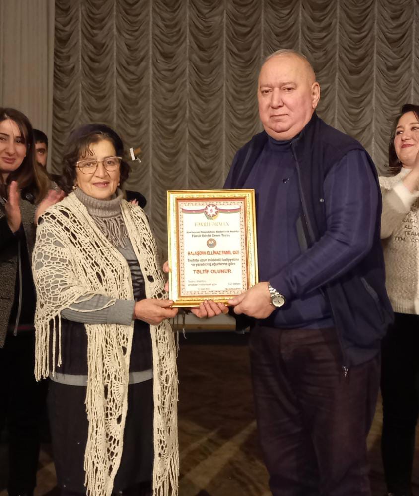 Bu münasibətlə E Balaşova teatrda uzun müddətli fəaliyyətinə görə rəhbərlik tərəfindən Fəxri Fərman, qiymətli hədiyyələrlə təltif olunub.